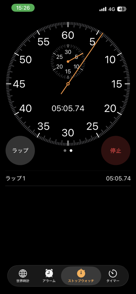 授乳時間は日によって、また左右によっても「まちまち」です。だからこそ、iPhoneのストップウォッチアプリを「アナログ表示」にして計測しています。 デジタル数字を追うよりも、時計の針がどれくらい進んだかを視覚的に捉える方が、今の進み具合を「体感」として一目で把握できるからです。