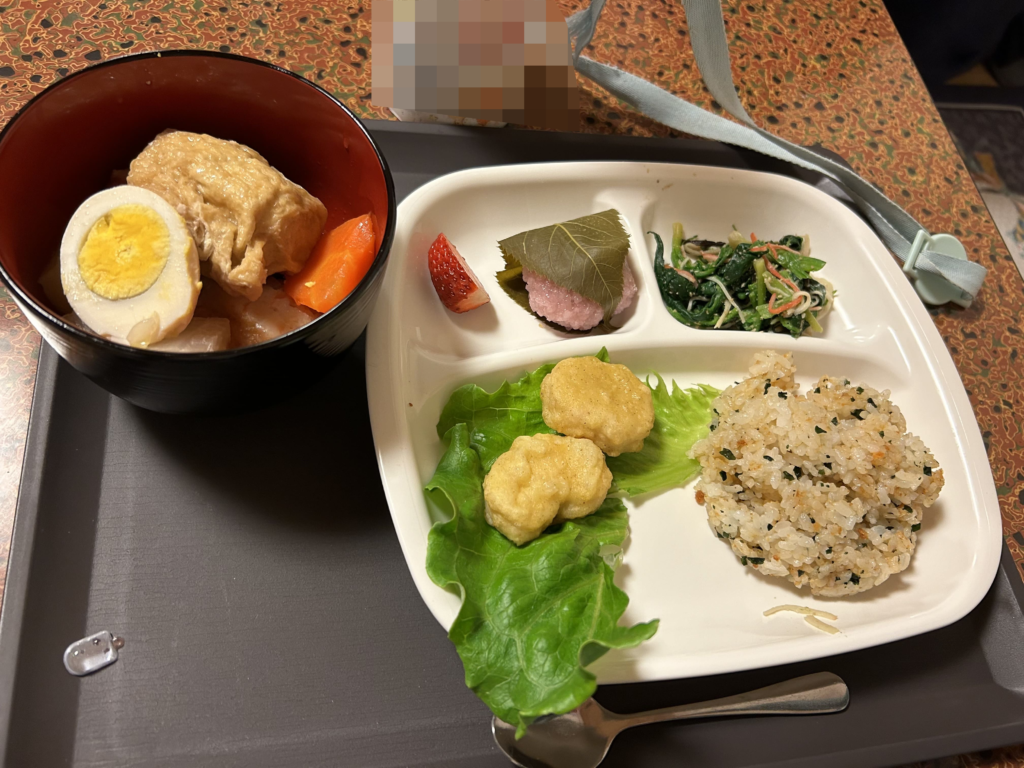 2/20の子ども食堂の内容。おでんが中心の献立。
