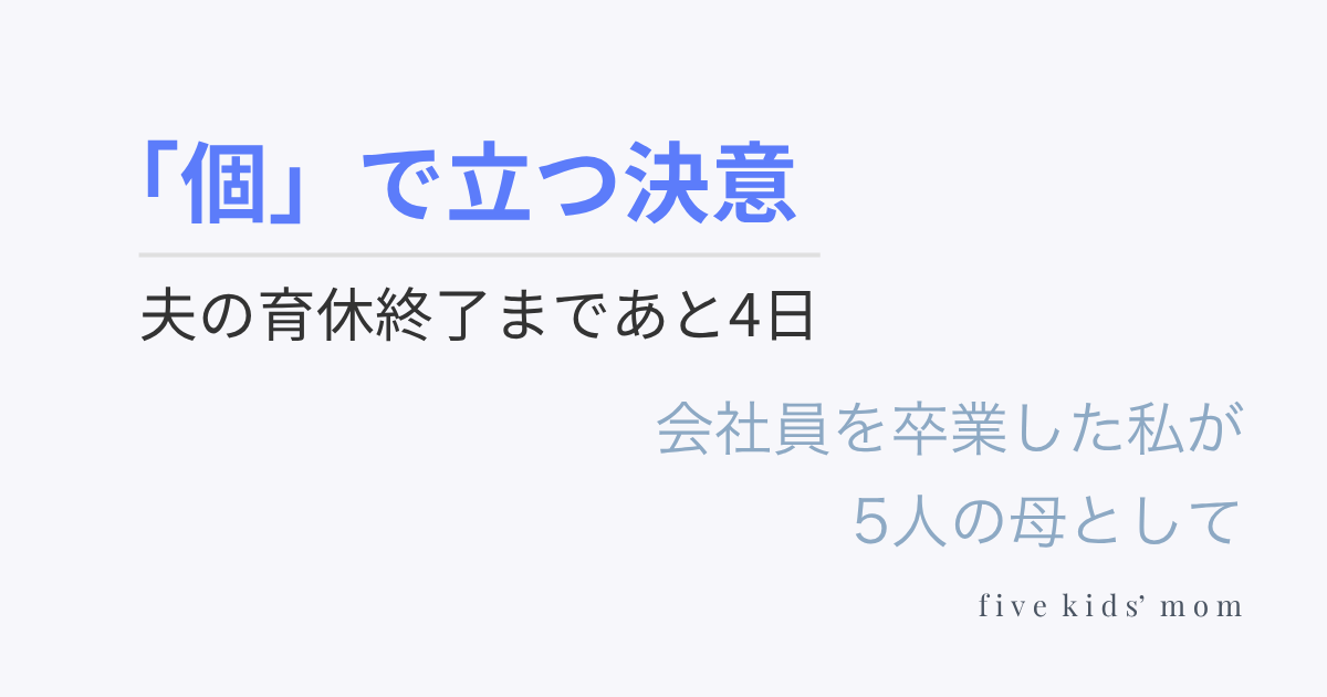 昨年4月に15年間勤めた会社を退職したとき、自分なりに覚悟を決めたつもりでした。けれど、いざ夫が復職し、本当の意味で「組織の後ろ盾」がない状態で独り立ちするとなると、やはり夜中にふと足がすくむこともあります。 「5人の子どもを抱えて、本当に一人で戦っていけるのかな?」 ふとした瞬間に顔を出す経済的な不安は、想像以上にずっしりと重く感じられます。それでも、私がこの道を選んだのには、どうしても譲れない理由がありました。